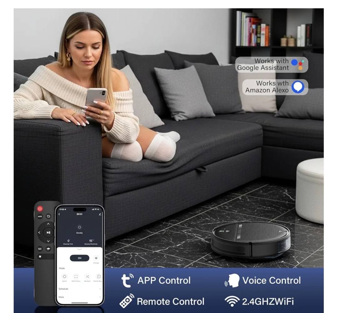 Tecnología 2 en 1 que aspira y trapea al mismo tiempo. Perfectos para el pelo de mascotas, suelos duros y alfombras, con sistema anti-golpes, anti-caídas y control por voz o control remoto.